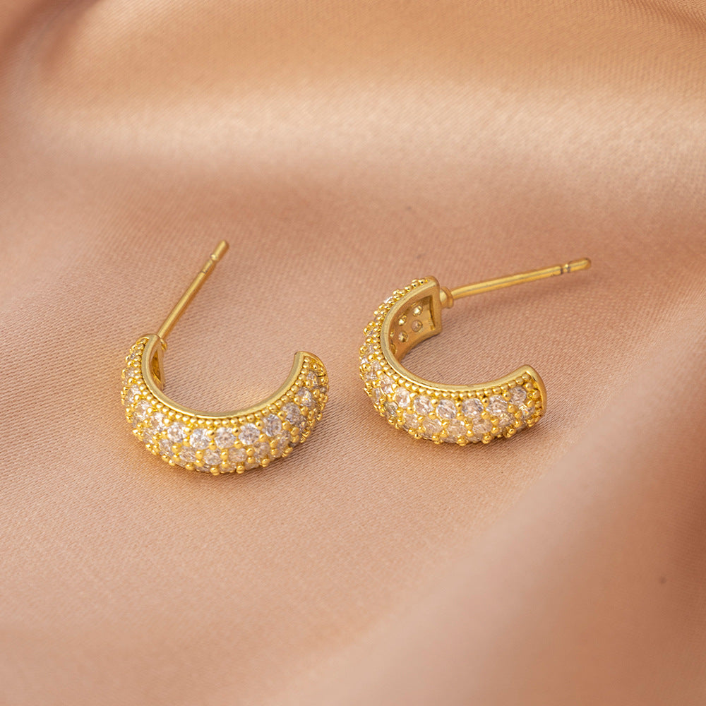 Estos aretes tipo argolla destacan por su diseño grueso y elegante, cubierto con zirconias brillantes que reflejan la luz desde todos los ángulos.
